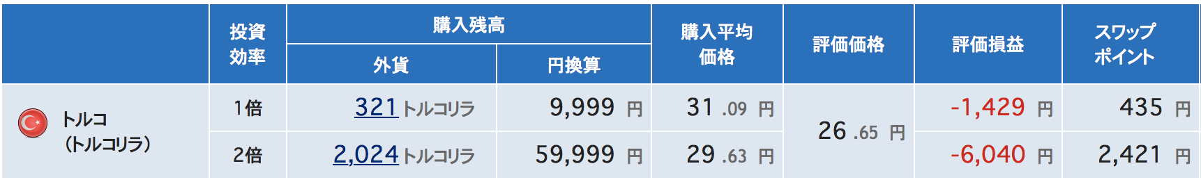 資産運用結果の第3弾は、スワップポイント運用のトルコリラです。